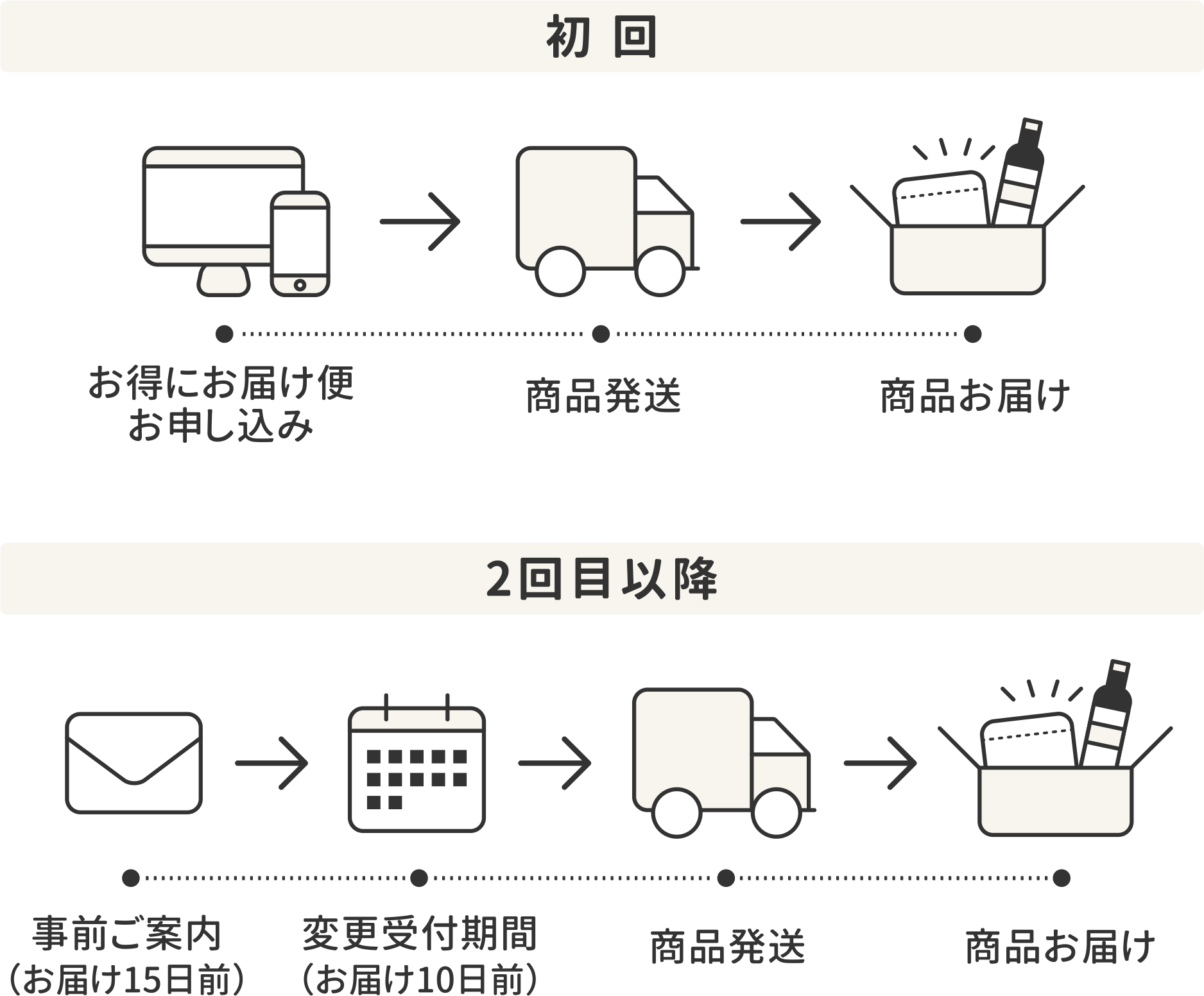 次回お届け予定日を事前にご案内します。お届け日の変更やキャンセルも承ります。